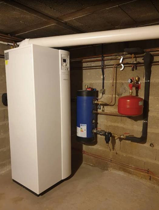 Pose d’une pompe à chaleur air-eau Hybride usage chauffage & eau chaude sanitaire pour une maison individuelle de 125m² basée dans la ville de Maurecourt(78).